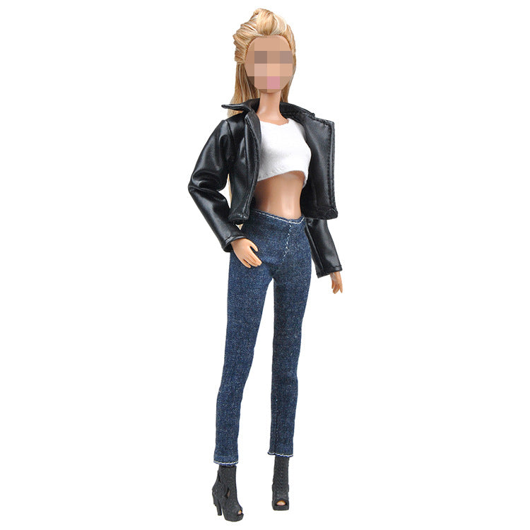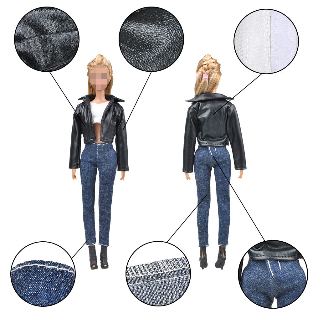 Doll Dress Up Accessories Fashion Black Leather Suit